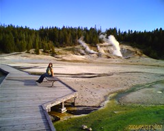 So, yesterday we drove into the park. She was amazed. Couldn't believe that wildlife would walk within yards of people. I took her to Mammoth Hotsprings. My mom had taken me there a few times before.